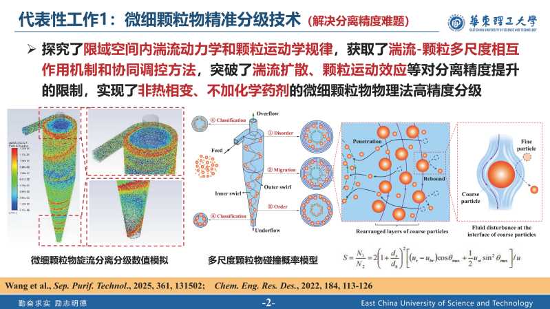 3. Hanyu Zhang, Yifei Li, Bingjie Wang*, et al. High-precision and high-efficiency particle classification of micron powders based on 3D printed microcyclones: Characteristics, mechanisms and applications. Separation and Purification Technology. 2025, 361, 131502. (Q1, IF=9.0, 引用频次: 1);