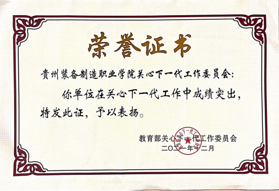 日前,学院关心下一代工作委员会被教育部关心下一代工作委员会授予“全国教育系统关心下一代工作先进集体”荣誉称号。近年来,学院认真贯彻习近平总书记对关心下一代工作的重要指示和省委教育工委、省教育厅关工委相关工作要求,按照上级关工委工作部署,充分发挥“五老”队伍的优势,结合学院青年学生成长特点,创造性地开展各项健康有益的文化育人活动工作,全面落实立德树人根本任务,为青年学子的健康成长做出了积极贡献。面对荣誉,学院将再接再厉,为关心下一代工作再作新贡献。
