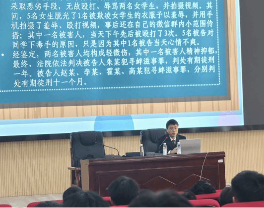 此次普法宣讲中,王检察官结合检察院近年办理涉及在校学生的犯罪的真实案件,给同学们详细的介绍了如何预防校园霸凌、远离毒品、远离网络犯罪等方面的内容和方法,给在场师生上了一堂生动的法宣课。