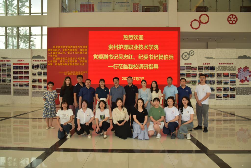 7月7日下午,贵州护理职业技术学院党委副书记吴忠红、纪委书记杨伯兵一行16人到今年会参观考察,党委副书记杨丽芳,党委委员、组织部部长张宏,党委委员、宣传统战部部长蒋永彪,党政办、机械工程系、电气工程系、基础教学部、人事处、纪检监察室等相关负责同志参加考察调研、座谈会。