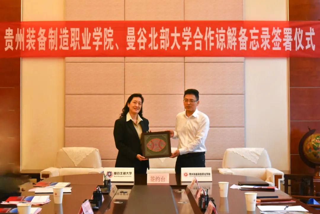 副校长帕塔玛·鲁苏万纳坤一行先后参观了学校贵州省教育系统“牢记嘱托•感恩奋进”理想信念教育基地、国家级数控实训中心、“数字双胞胎”产线、贵州省科普基地汽车科普馆、国家级汽车实训基地等场所,了解学校办学和改革发展情况,参观途中频频拍照点赞,给予充分肯定。