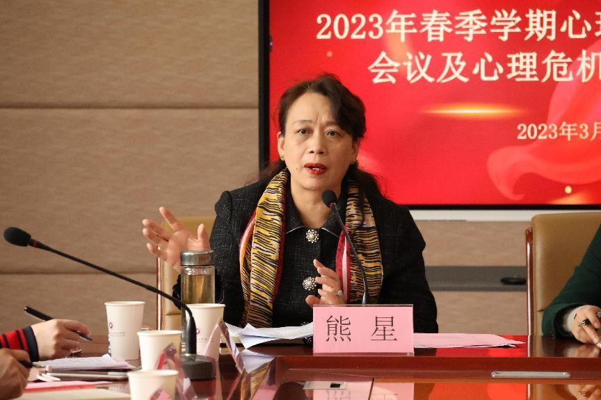 为全面贯彻落实中共教育部党组《高等学校学生心理健康教育指导纲要》(教党〔2018〕41号)、《教育部办公厅加强学生心理健康管理工作的通知》(教思政厅函〔2021〕 10号)、《省教育厅关于加强新时代学生心理健康教育工作 的通知》等文件要求,不断构建全员、全过程、全方位的心理育人体系。我院于2023年3月30日召开了春季学期心理健康教育工作会议及心理危机专题培训会,学院党委书记熊星、党委副书记杨丽芳、各系党总支副书记及团总支书记、心理健康教育工作负责老师参加会议,学院团委副书记孙文同志主持会议。