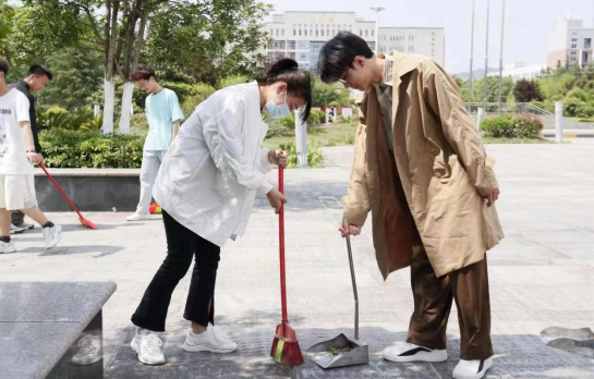 活动中,志愿者们以一丝不苟、认真负责的工作态度,将足球场、教学楼、食堂、篮球场等环境区域清扫干净。