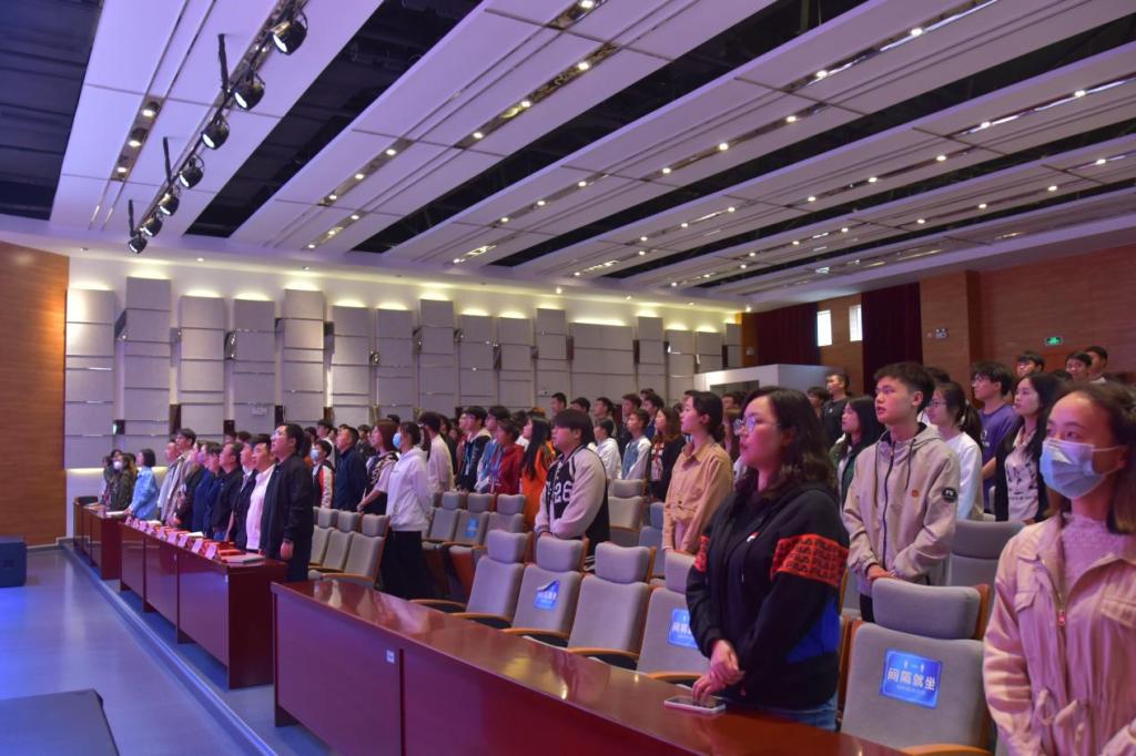 表彰大会在高昂的团歌《光荣啊,中国共青团》中拉开序幕,