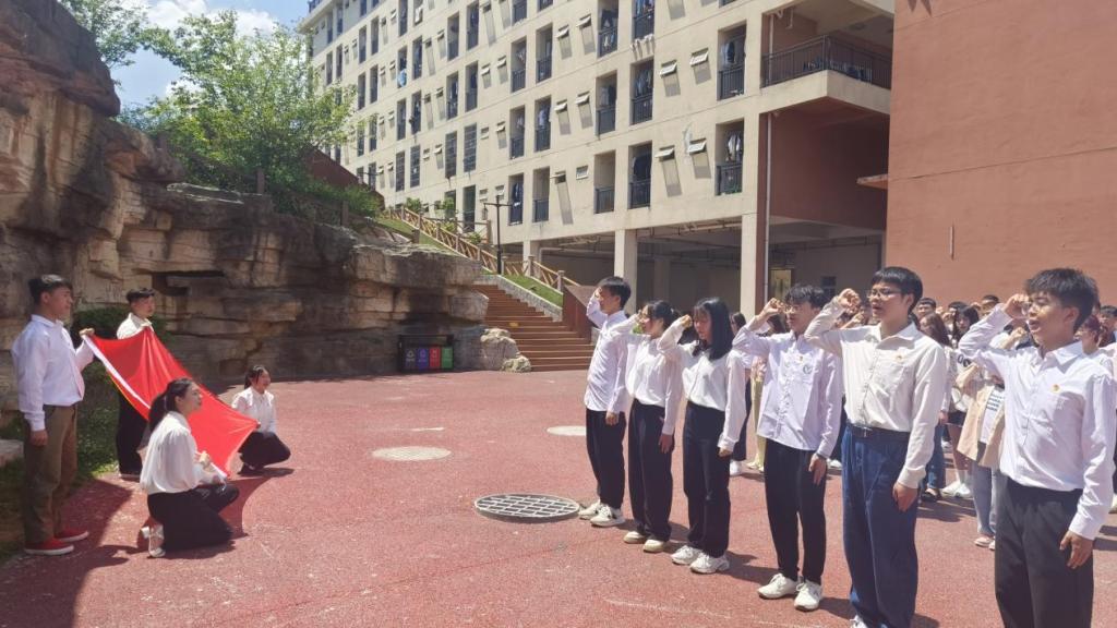 “我志愿加入中国共产主义青年团,坚决拥护中国共产党的领导,遵守团的章程,执行团的决议,履行团员义务,严守团的纪律,勤奋学习,积极工作,吃苦在前,享受在后,为共产主义事业而奋斗。”在鲜红的团旗下,建筑工程系团员代表何雨青同学领誓,全体团员青年高举右手,重温作为团员的光荣责任与崇高誓言,回顾入团宣誓时的庄严承诺。慷慨激昂的铮铮誓言,激励着在场的每一位团员,大家纷纷表示将时刻牢记誓言,坚定理想信念,严格要求自己,砥砺奋斗,用实际行动证明自己无愧于团组织的信任,无愧于共青团员这一光荣的称号。