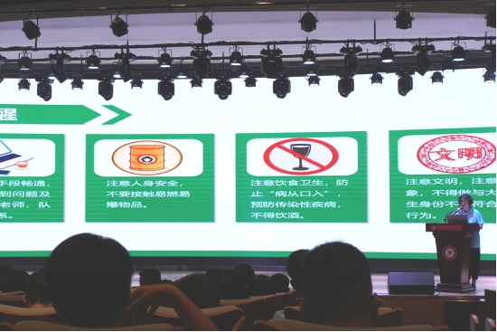 出征仪式结束后,参与2023年学生志愿者暑期“三下乡”社会实践活动全体师生在德润楼105报告厅进行了安全教育培训。