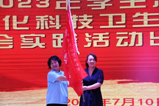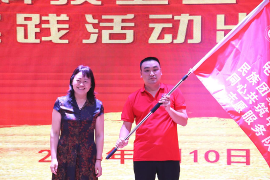 党委书记熊星老师为团委暑期“三下乡”社会实践活动队伍授旗