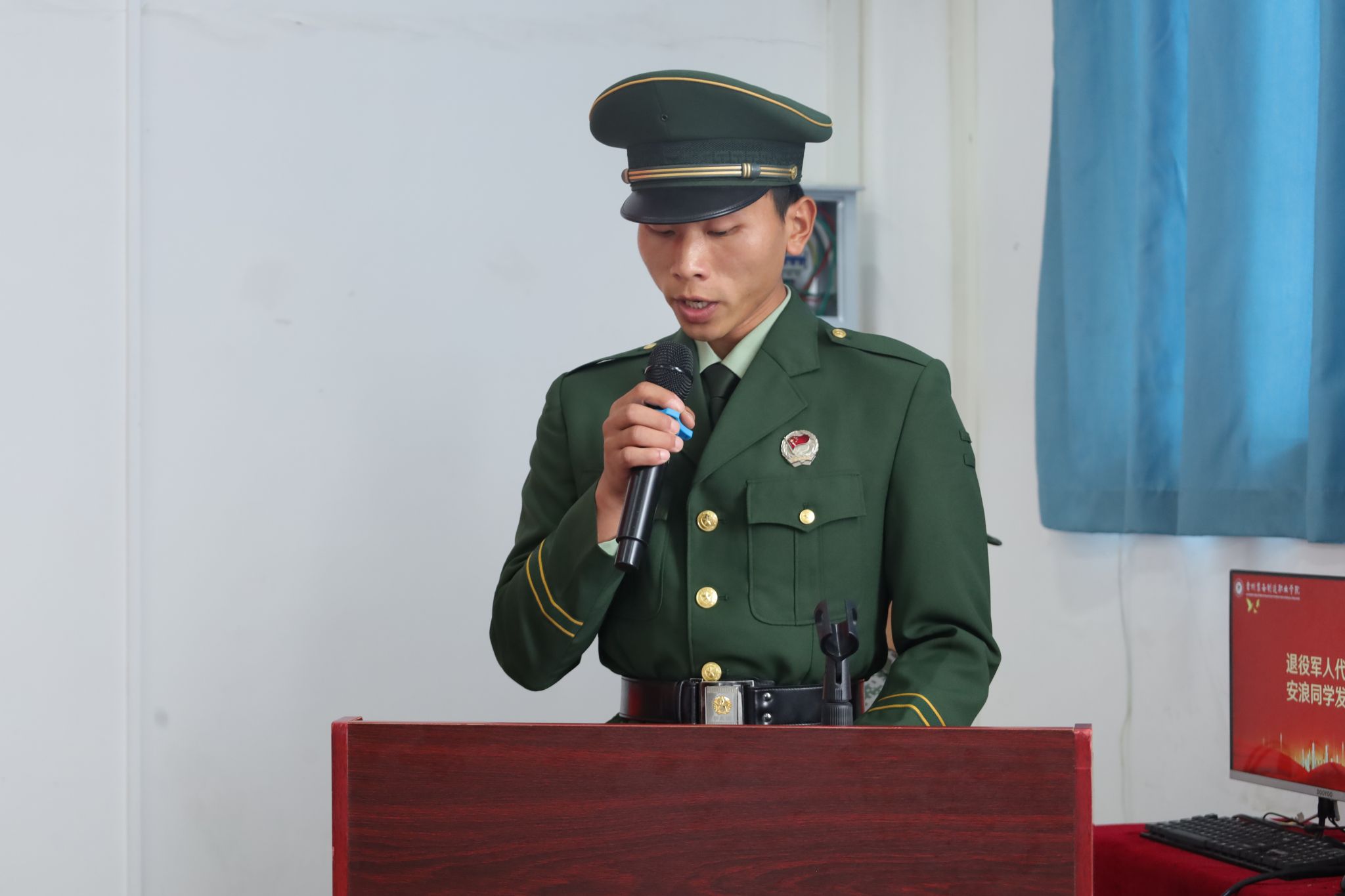 退役复学代表安浪,通过自己的军旅生涯向入伍学弟分享了服役期间的收获。他说,虽然离开军营,但在军队的锤炼经历,对个人发展有很大的助力,至今他依然始终坚守和践行军人优良作风。他鼓励即将入伍的学弟们,要刻苦训练,用手中钢枪,守卫祖国疆土。