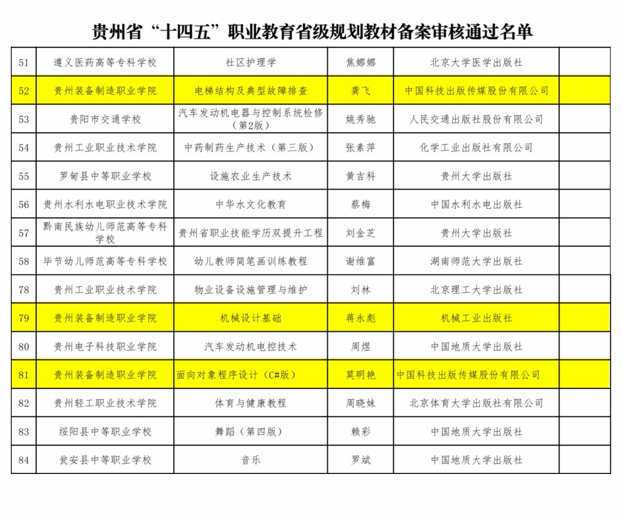 贵州省“十四五”职业教育省级规划教材备案审核通过名单