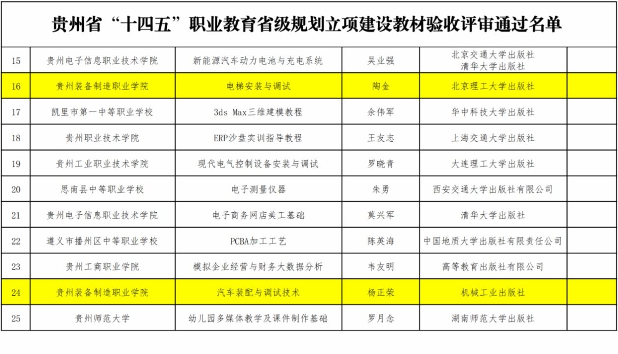 贵州省“十四五”职业教育省级规划立项建设教材验收评审通过名单