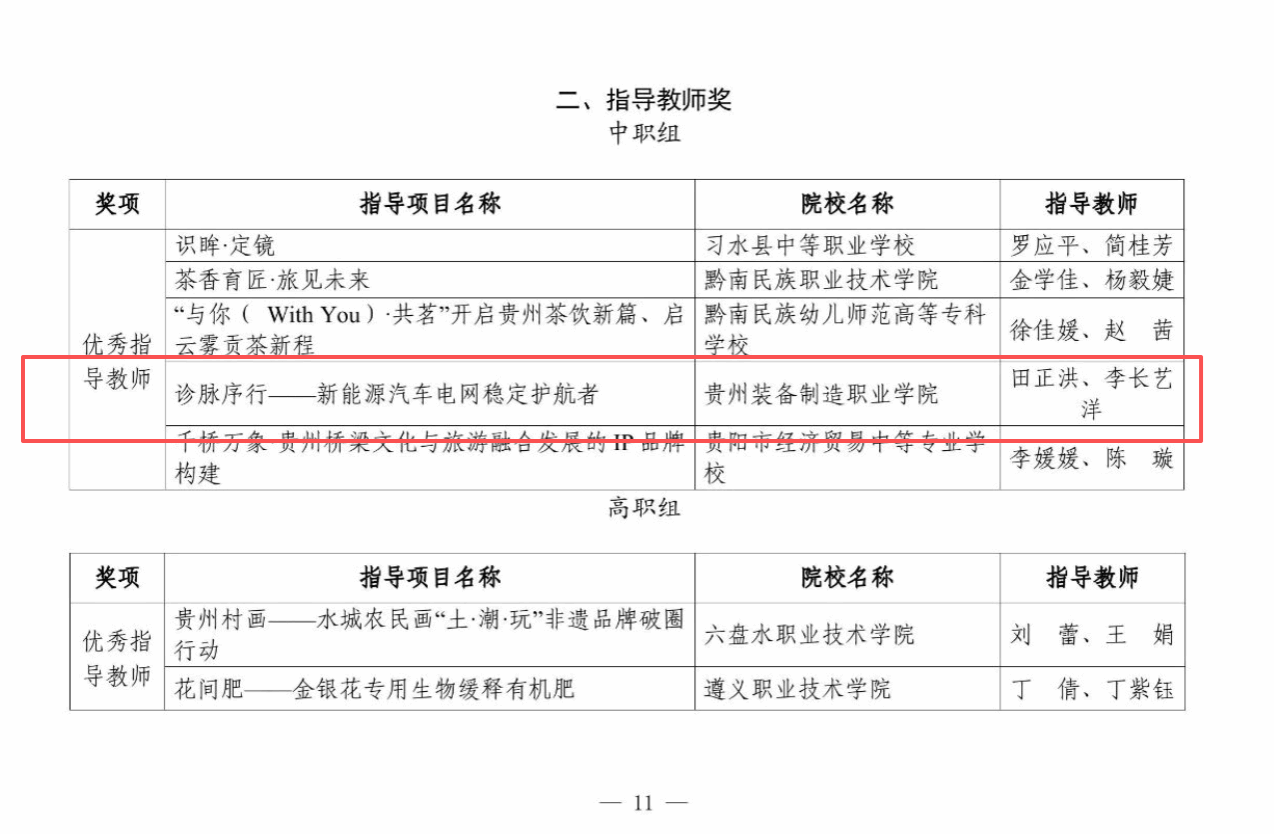 学院中专部“诊脉序行——新能源汽车电网稳定护航者”项目获中职组二等奖,并晋级国赛总决赛,项目团队指导教师田正洪、李长艺洋获优秀指导教师。学院“智械强驱——基于动能回收与人机协同的自适应仿生外骨骼机器人”获高职组三等奖。
