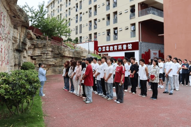 学员们在学校禁毒教育科普馆前进行禁毒宣誓