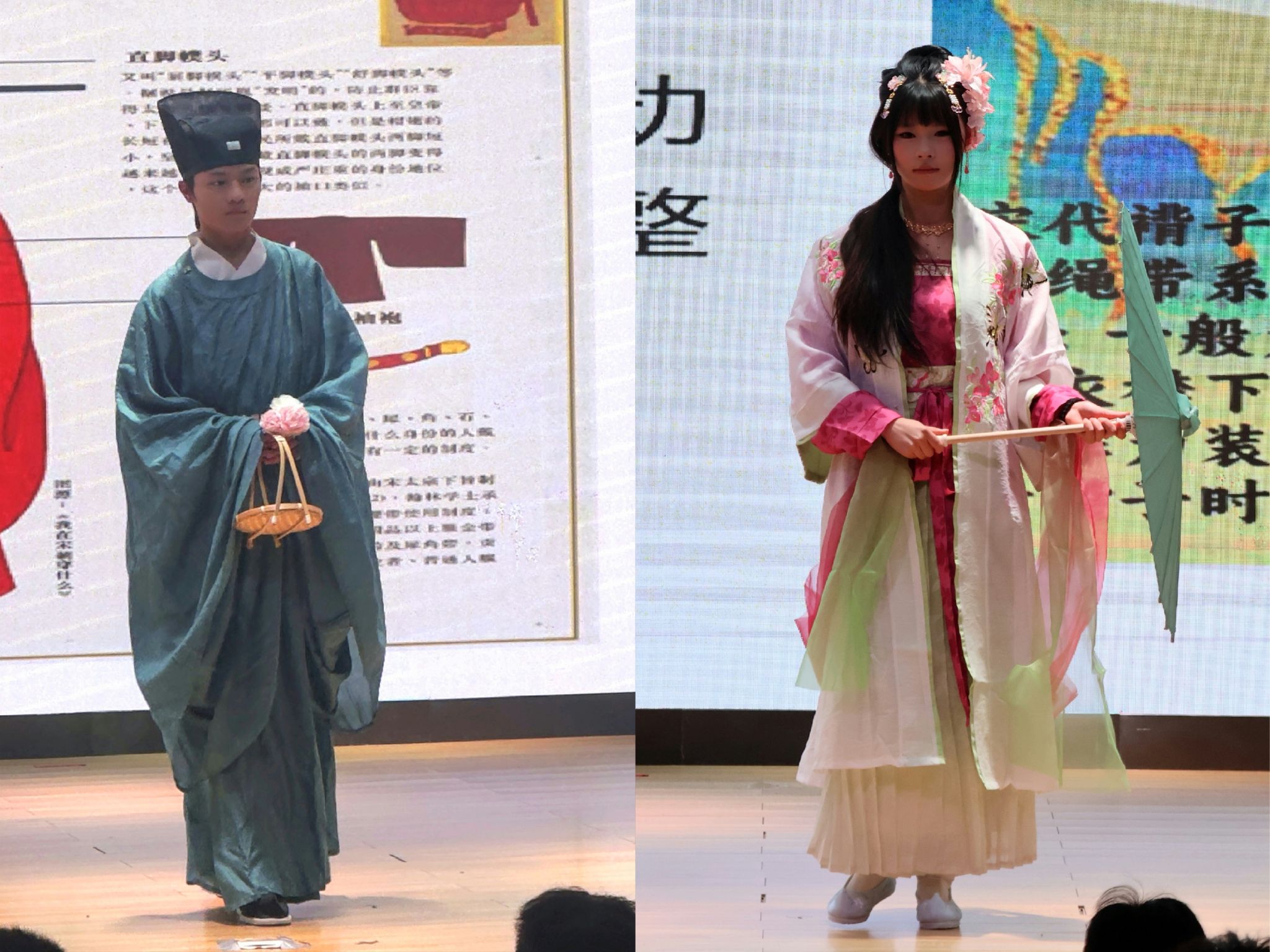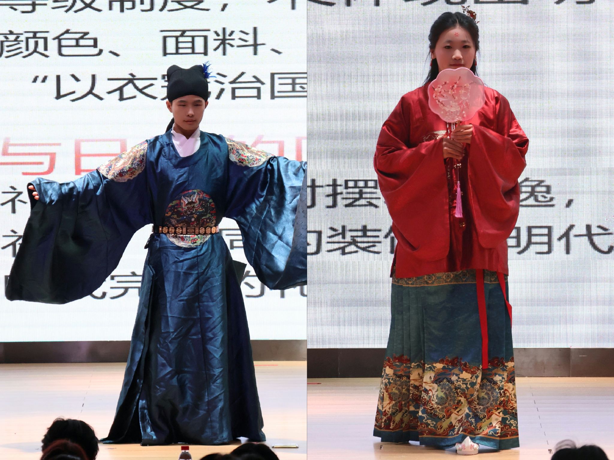 活动由“校园之声”广播站的同学们担任主持,大学生艺术团礼仪班的同学们则化身为“汉服推荐官”,生动地展示了不同形制汉服以及服装背后蕴含的历史文化和古代礼仪知识。大学生艺术团的同学们还表演了优美的国风舞蹈,活动现场掌声不断、气氛热烈。