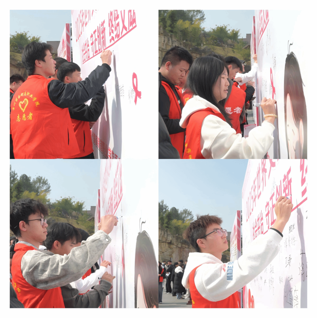 为进一步深化广大师生对艾滋病防治工作重要性与长期性的认识,持续推动学校防艾教育工作的常态化开展。12 月 1 日下午,在第 38 个 “世界艾滋病日”到来之际,由学院团委举办的 “社会共治,守正创新,终结艾滋” 防艾宣传教育活动在水景广场举行。学院党委副书记杨丽芳出席活动并致辞,各系部 300 余名师生代表参加活动,活动由团委书记孙文主持。