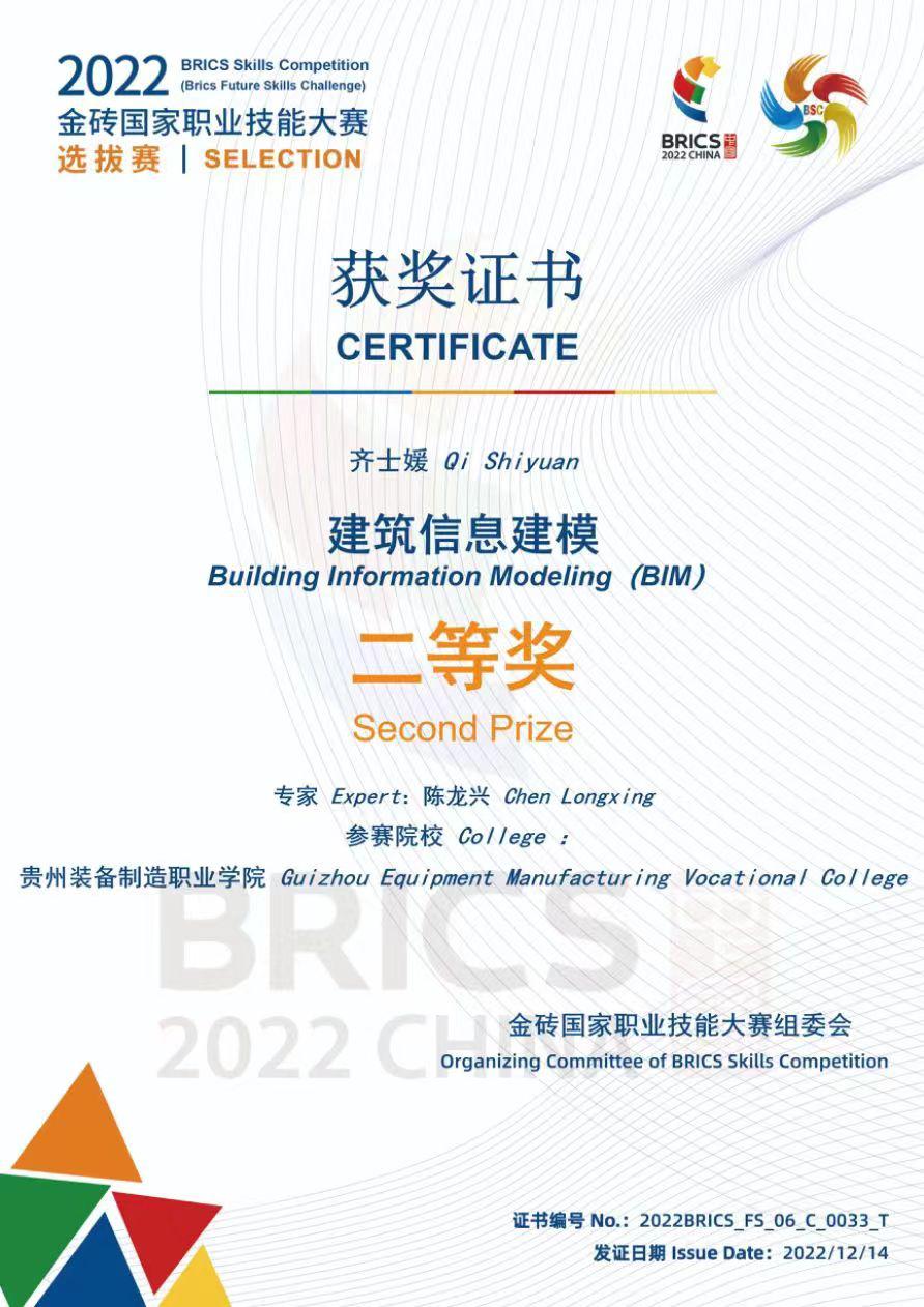 近日,2022年金砖国家职业技能大赛建筑信息建模赛项区域选拔赛获奖名单公布,学院建筑工程系参赛选手齐仕媛老师在此次比赛中荣获二等奖。