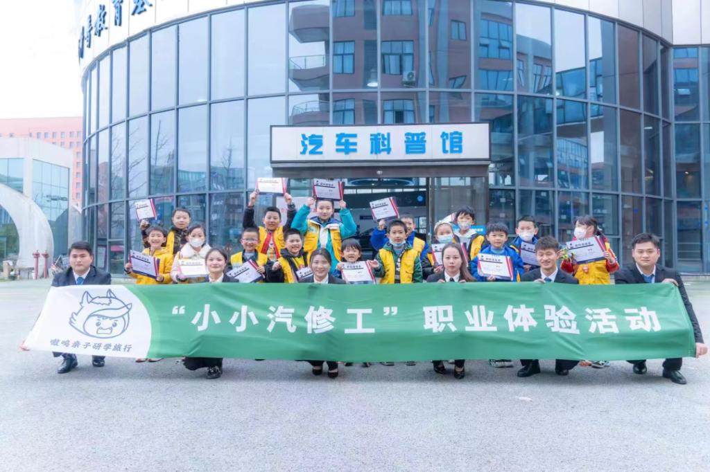 3月19日下午,我院省级科普教育基地汽车科普馆迎来了一群朝气蓬勃的青春身影,来自贵州嗷呜亲子研学旅行的小朋友与家长们,一同走进汽车大世界,开展“小小汽修工”体验活动,体验汽车前沿技术,领略科技创新氛围,科普讲解团成员负责全程接待讲解。