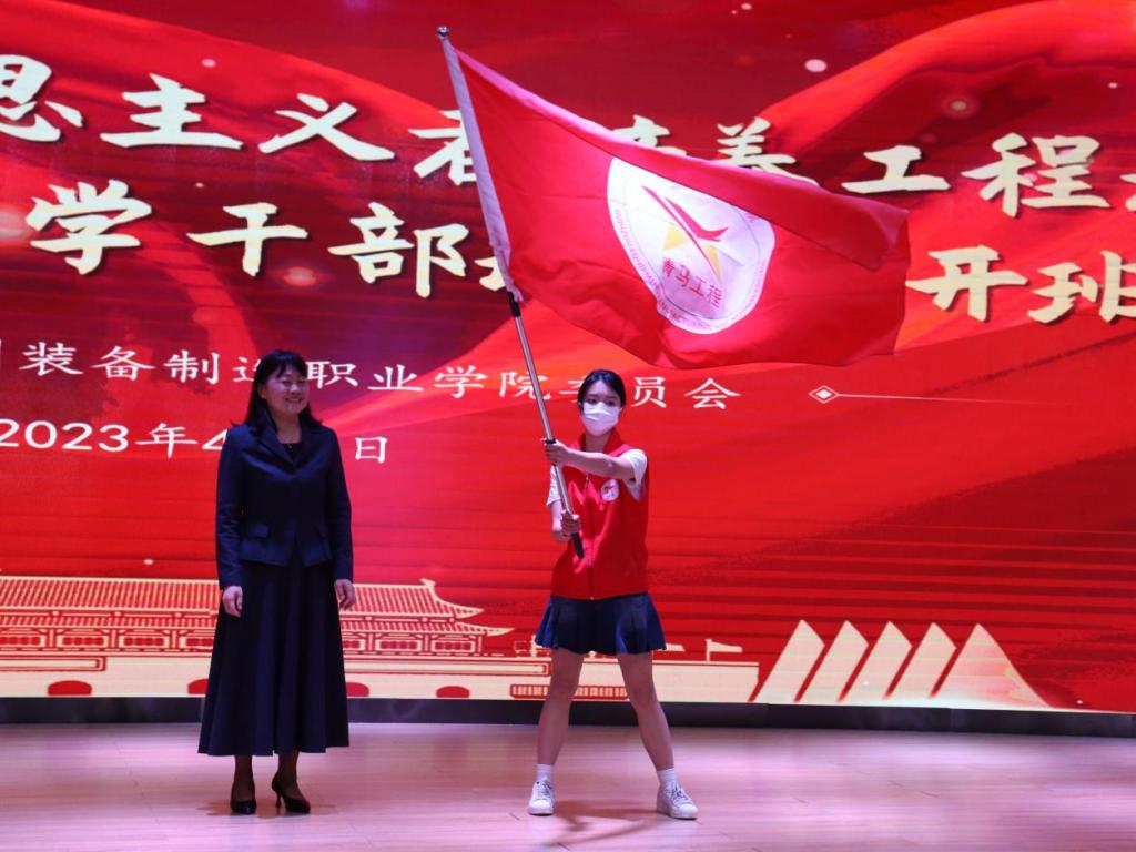最后,学院党委书记杨丽芳老师向第三期“青马工程”培训班学生代表授旗。