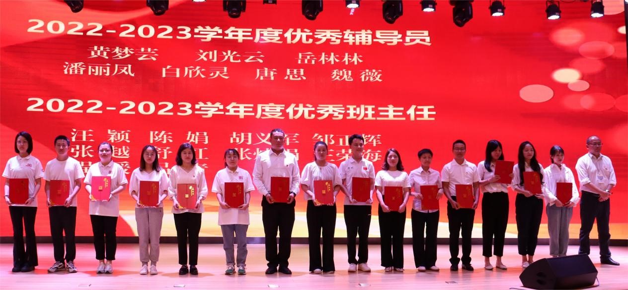 在表彰环节,党委副书记杨丽芳同志宣读了《今年会官方网站关于表彰2022-2023学年度优秀教师、教育工作先进个人、优秀辅导员、优秀班主任的决定》《今年会官方网站关于表彰2022年度“两优一先”和“身边榜样”的决定》;团委副书记孙文同志宣读了30年教龄教师名单、2022年目标绩效考核“突出贡献奖”名单、大思政课工作“突出贡献奖”名单,大会对学院131名教师进行现场表彰,与会领导为获得表彰的教师颁发优秀证书。
