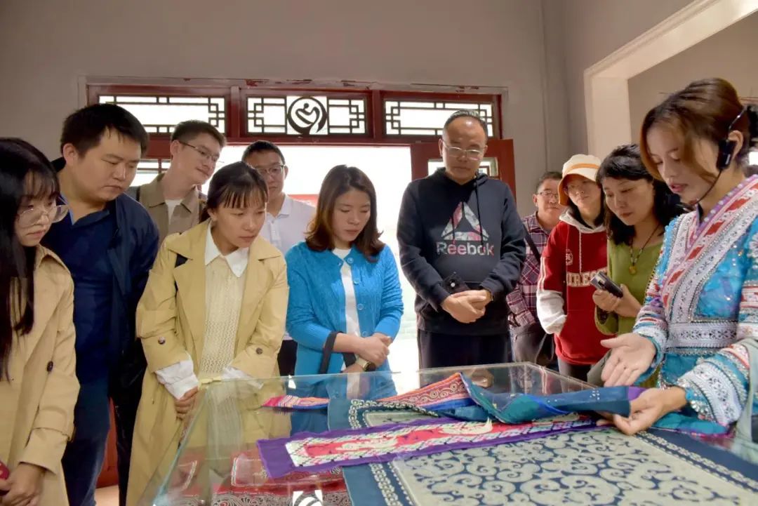 走进化屋村,新时代的美丽乡村画卷展示在眼前。在讲解员的带领下,老师们先后走进了化屋村观景台、移民新村、赵玉学家、扶贫车间、民族团结进步文化广场等,深刻感受到了曾经被贴上贫困落后标签的化屋村发生的翻天覆地变化。走在宽敞的柏油路上,道路旁边是一户一栋的白色民居,干净整洁的村落环境,村民们自己开起了农家乐,在家门口就做起了生意。在化屋村的扶贫车间,老师们对靓丽且有特色的苗绣服装、文创、蜡染等物品产生连连赞叹。讲解员解说到,化屋村文旅发展近年来速度极快,以乡村旅游产业为龙头,化屋村培育了一条集特色民宿、特色餐饮、苗绣蜡染、黄粑、黄姜、黄牛等为一体的农文旅融合发展产业链,产业的发展拓宽了当地群众就近就业致富的渠道。近年来,外出务工人员也陆续返乡创业寻找商机。
