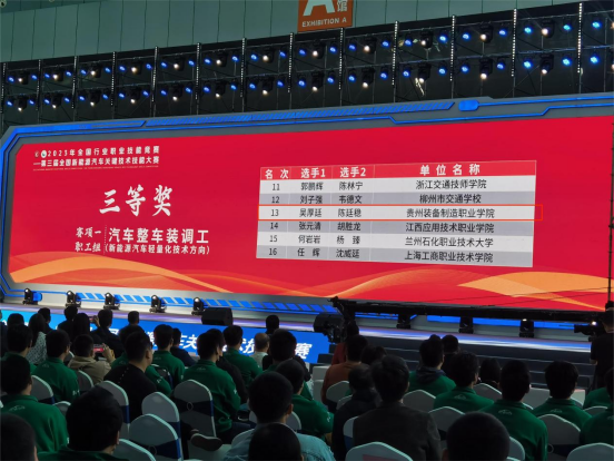 汽车整车装调工三等奖获奖名单