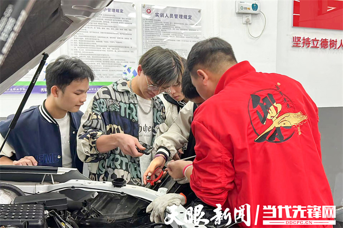 走进实训室,记者看到,这里非常干净整洁,只见一部分学生正在听理论课,一部分学生正在老师的带领下进行实操,看上去同学们兴致高昂。
